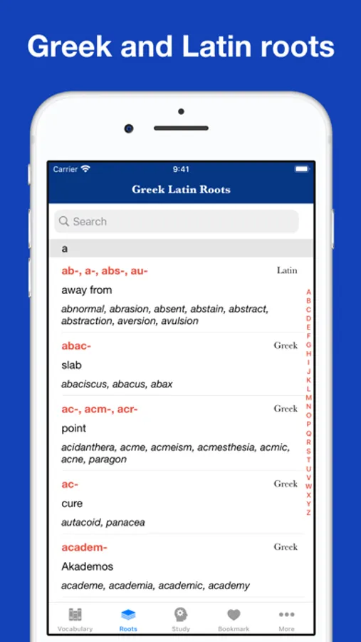 - Over 1660 Greek and Latin roots with meaning and derived vocabulary.