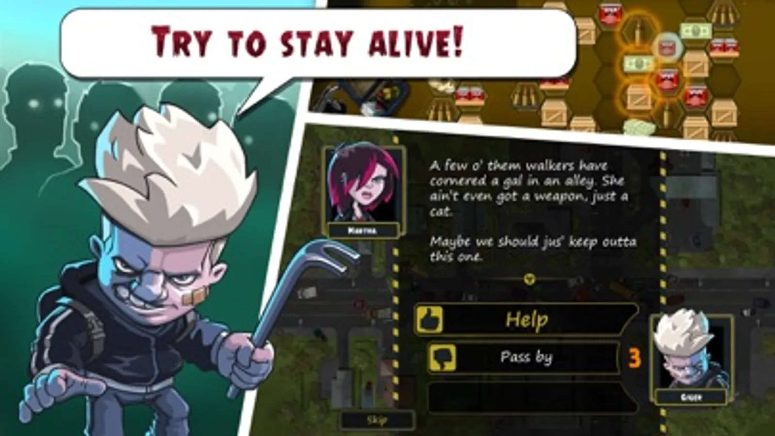Zombie Town Story is full of adventures in a world ravaged by the zombie apocalypse. Each of the game's episodes tells its own story. The direction of the plot depends on the decisions you make along the way. Do you help the little girl and her kitten in trouble, or do you just walk past? What do you give the robber? Do you shoot a friend infected by the zombie virus or not?
