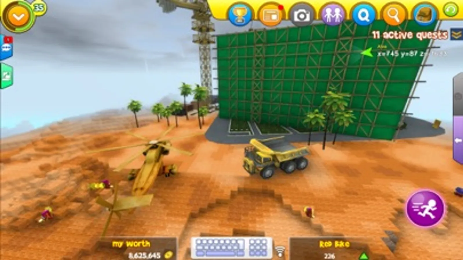 When everything has calmed down you can build structures outside your city, towers, tunnels, trenches, castles, stairs, anything is possible in the block-world that stretches out for miles. Travel fast between cities with hot-air balloons, use your bike, go-kart or AWD pickup-truck or just take a long walk to explore the open world!