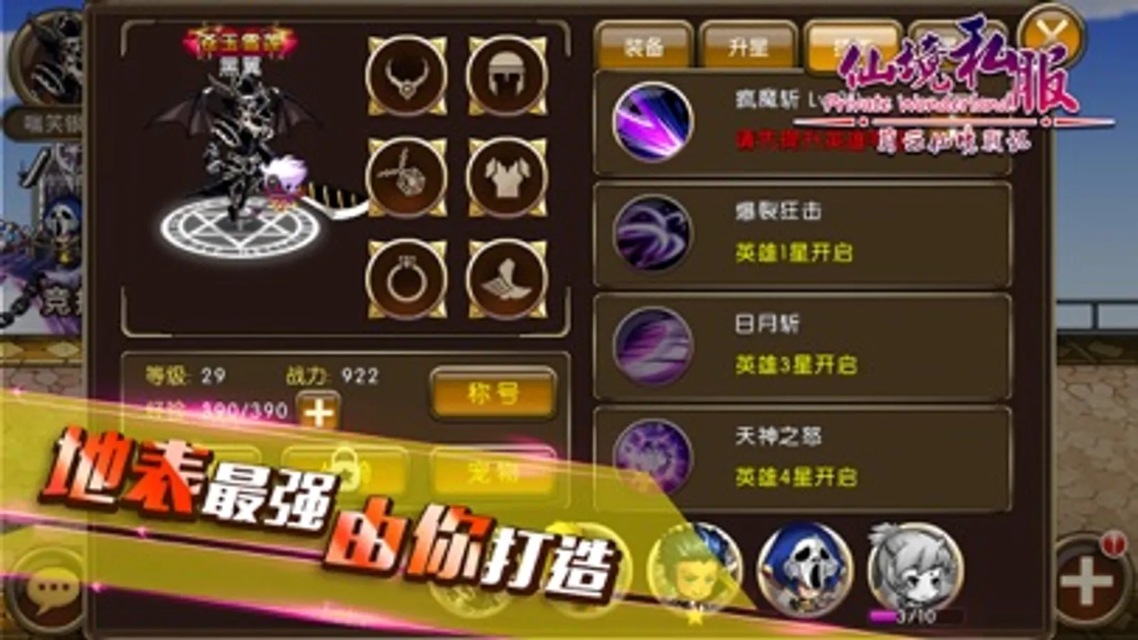 完美的装备养成系统,超炫的翅膀,超酷的坐骑,超萌的宠物,以及称号系统。游戏还拥有非常丰富的玩法,关卡冒险,勇者试炼,巅峰竞技场,BOSS战,公会战,副本,跨服战,还有更多高阶玩法等你来挑战。
