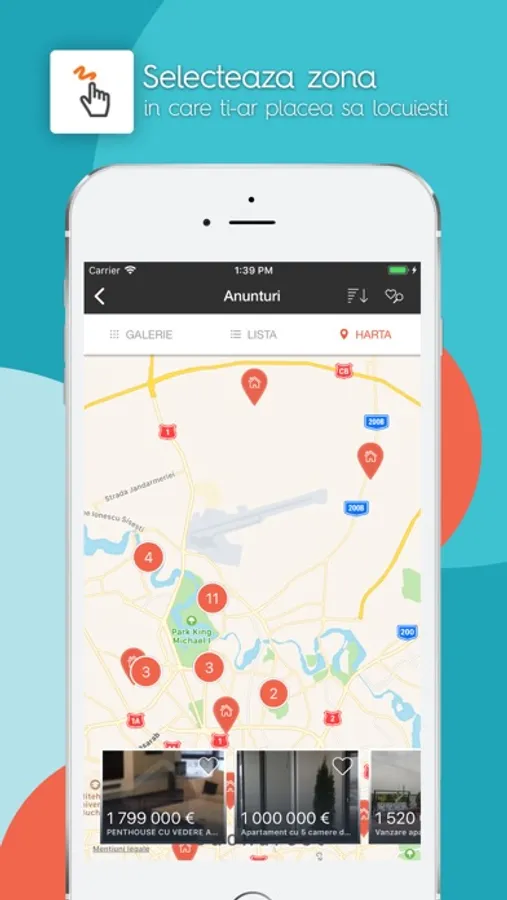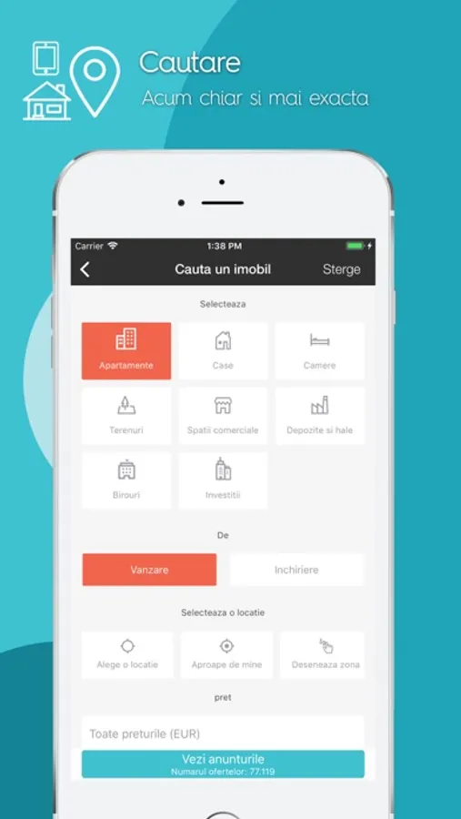 - Localizare pe hartă: caută viitoarea ta casă direct pe hartă alegând zona în care vrei să locuiești. Poți inclusiv să desenezi pe hartă aria ta de interes