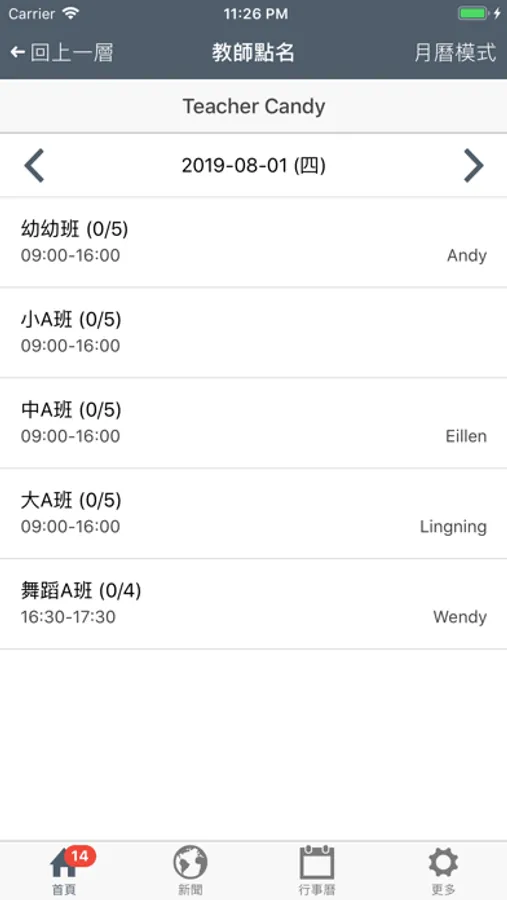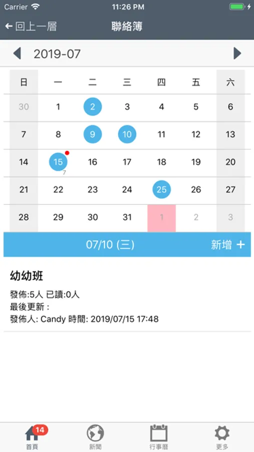 8. 行事曆:依月曆查看學校活動和假日。