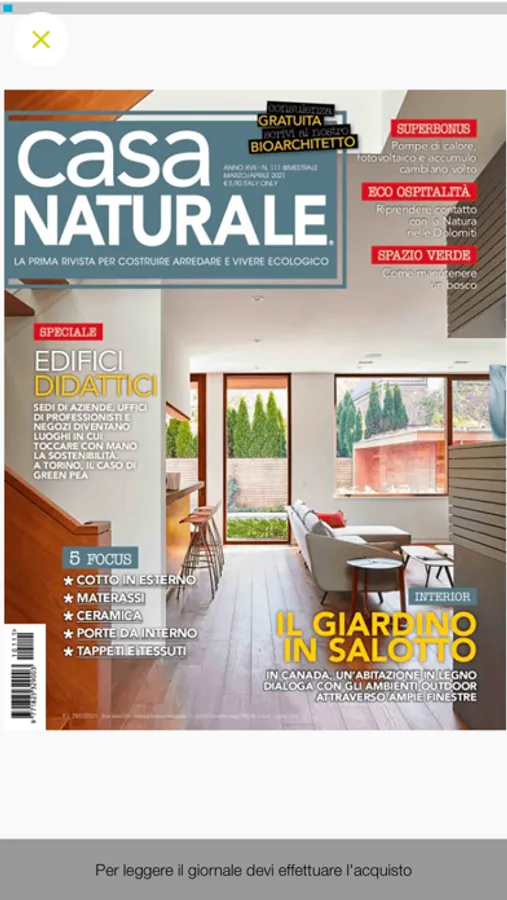 Casa Naturale dal 2004 è la prima rivista per costruire, arredare e vivere ecologico. La casa è il punto di partenza da cui poter attivare comportamenti responsabili basati sul risparmio energetico, l’utilizzo di materiali ecosostenibili e di fonti rinnovabili, per favorire il rispetto dell’ambiente e raggiungere il proprio benessere fisico e psicologico.