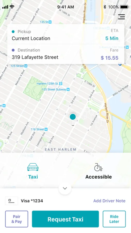- Enter your destination address (this allows us to provide an estimated fare amount)
