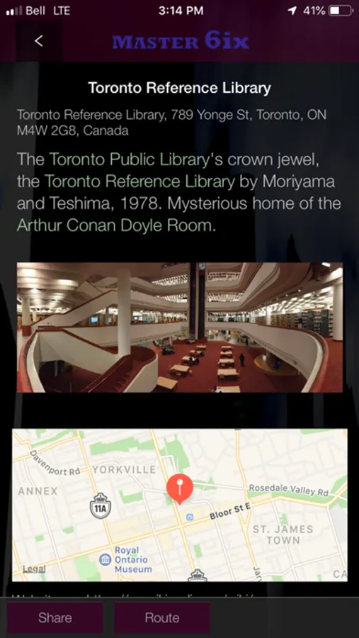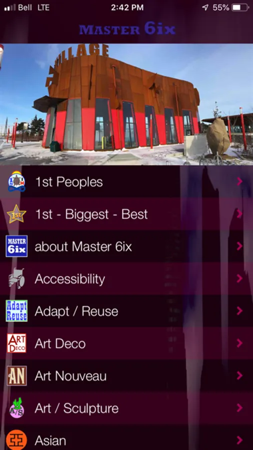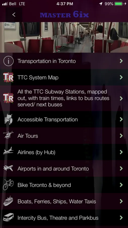Master: to really learn, Master: a list. Get to REALLY know Toronto and the area around it. Find out about the great range of places and things you can do or see today or on a day trip, even if you don't have a car. Architecture, Art, Culture, First Nations, Military, Nature, Sports, Royal, Queer stuff, the best 6 of 64 categories of fun, places for kids, helpful links for newcomers, natives and tourists alike, most everything mapped. Lots of original photos you can download and use for free. Toronto +200km, which includes most of southern Ontario, Buffalo, Niagara, Muskoka and the Near North. You must be connected to the internet to access all features. There is no tracking of your activity within the app.