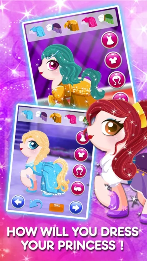 Princess Pony Girls Dress-Up encourages creativity, but creativity should be shared with others. This is why the game has a social sharing system. You can let your friends know how great your creation is by sharing it on social media (Facebook).