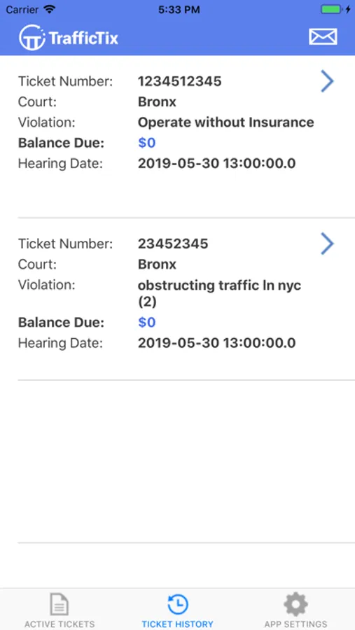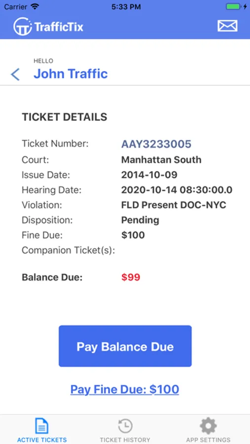You will receive push and/or email notifications regarding your upcoming violation hearing date, your account balance and the final outcome of your case. TrafficTix will cut back on the time you will be spending on the phone to inquire about the case we are managing for you. You can also pay your balance directly through the app using your credit card.
