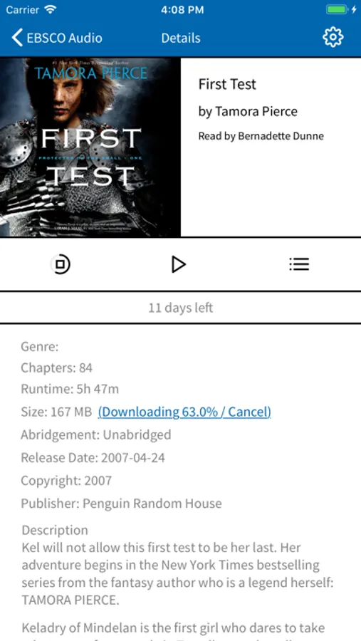 Audiobooks checked out to that account on EBSCOhost are immediately available for listening on your device.