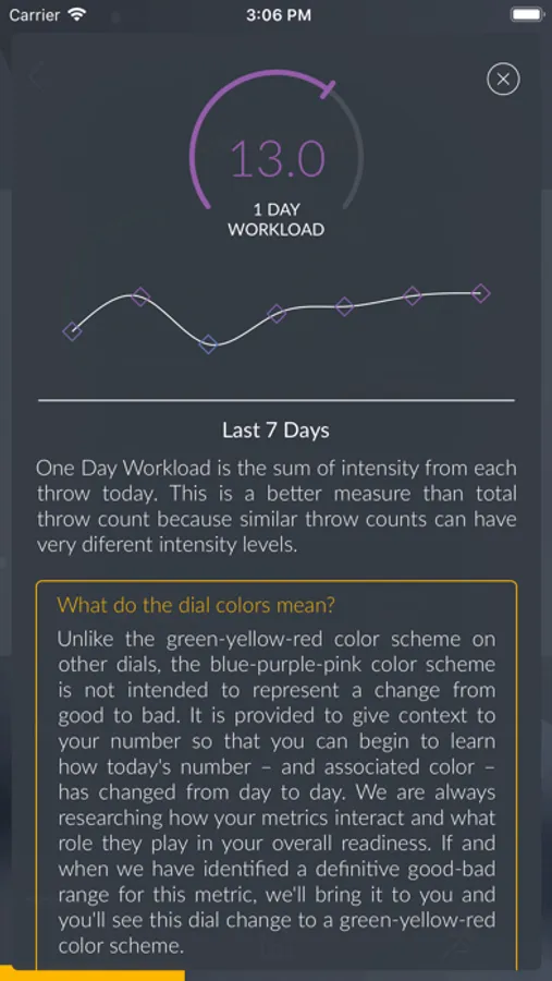 PULSE measures the stress and intensity of every throw. Always-on workload calculations give you insight about your throwing fitness and preparedness so you can safely build throwing fitness over time.