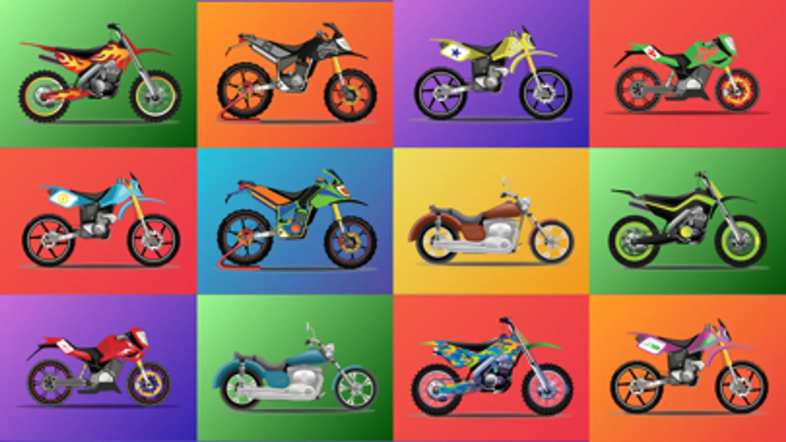 Choose one of the 12 amazing Motorcycles and take a ride in one of the 14 colorful scenarios!