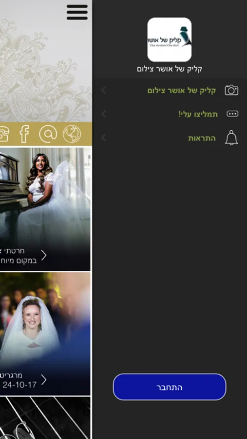 With קליק של אושר צילום branded mobile app you can delight them by uploading their photos to their personal gallery within minutes of their event, from anywhere, anytime.