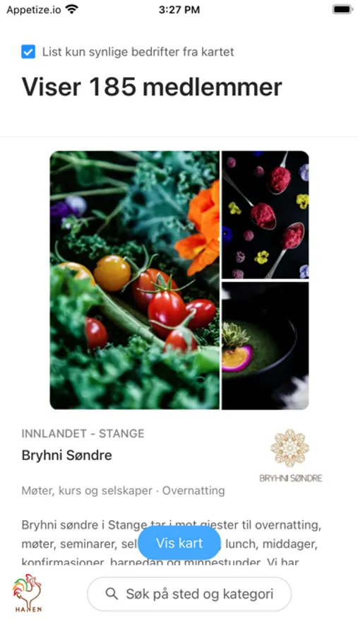 Gjennom denne appen kan du lett finne dine HANEN bedrifter og deres kontaktinformasjon.