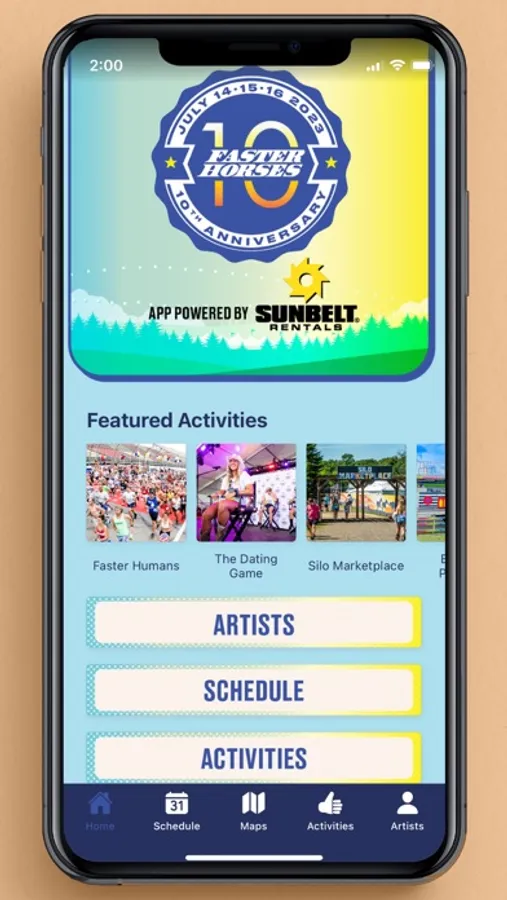 Download the official Faster Horses Music Festival app! Explore all the fun we have in store for you festival weekend. View campground maps and other info to help you get around all weekend! Plus, get festival updates and special surprises throughout the weekend. In the app, you can view the festival schedule and set up notifications for reminders about when your favorite artists are playing.