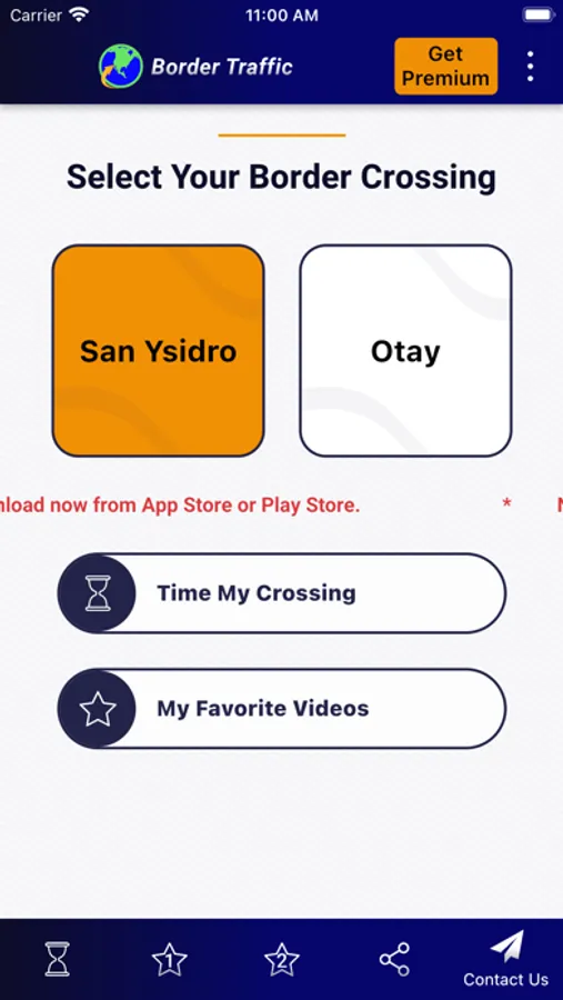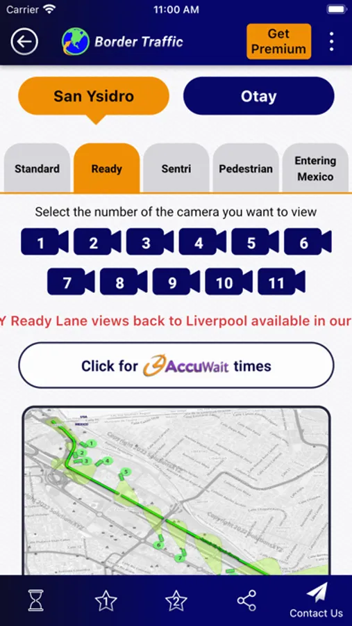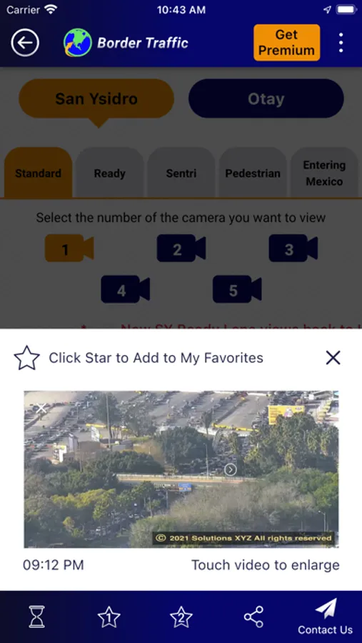 • My Favorite Videos lets you save 2 different videos. With one click, you’ll see video of your preferred crossing and lane. If it shows a long wait, click just once more to see a video of your 2nd choice, letting you compare the 2 videos and make a quick decision.