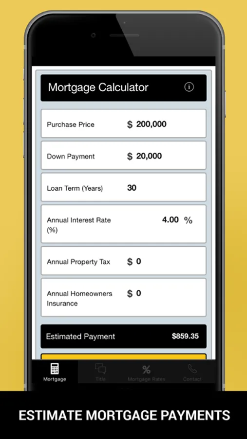 With the Tucker Services app, you can calculate an estimated payment for your mortgage. Enter your purchase price, down payment, loan term, and annual interest rate to see your estimated payments. You can also enter your annual property tax and annual homeowners insurance for an even more detailed estimated payment.