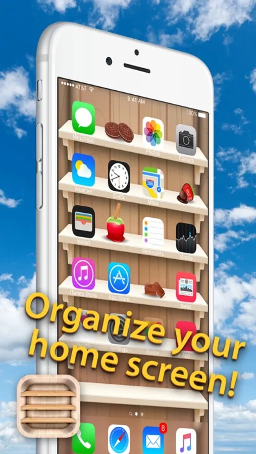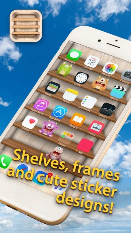 Organize your your home screen with unlimited background making options you'll get with our new Top Shelves Wallpaper! Design custom Home Screen Backgrounds with Shelf, Frame and Sticker Decorations that will look amazing on your iPhone! Choose the background you like and than add some stylish shelves or put your icons in beautiful frames and add cute stickers to make your home screen look perfect!