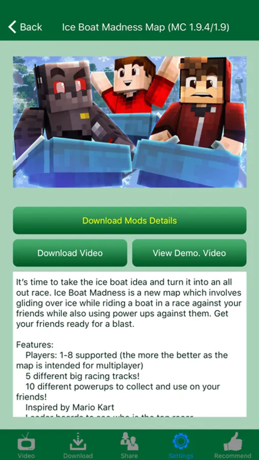 This app contains Featured Maps of 【Minecraft】, including download links and demonstration videos by professional gamers, so you can find out whether the time and money needed is worth to backup the game, download, install and play the maps.
