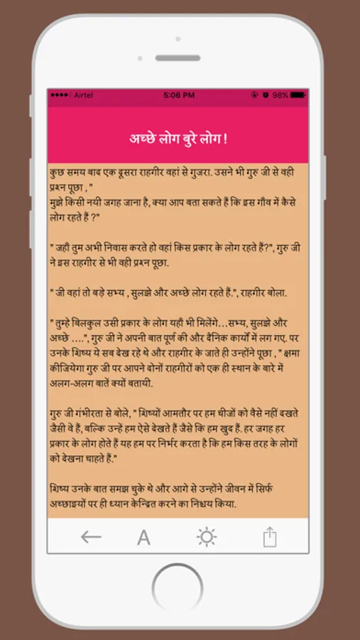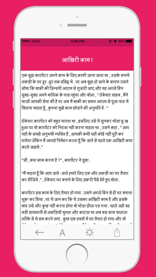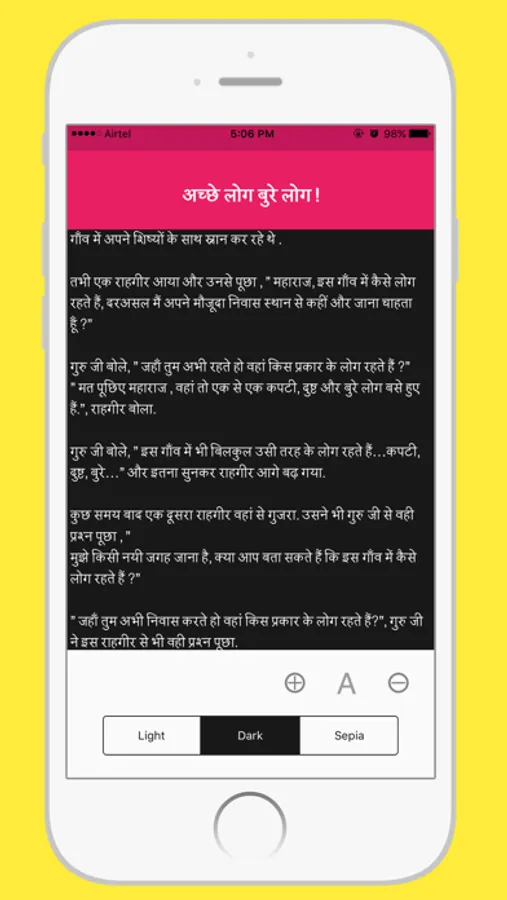 There are many features of this app, like various customization like setting up reading mode in three modes which are light, dark and sepia; you can also set the brightness and font size using simple navigational controls which is quite easy for kids who want to learn Hindi or pursuing some educational course in Hindi.