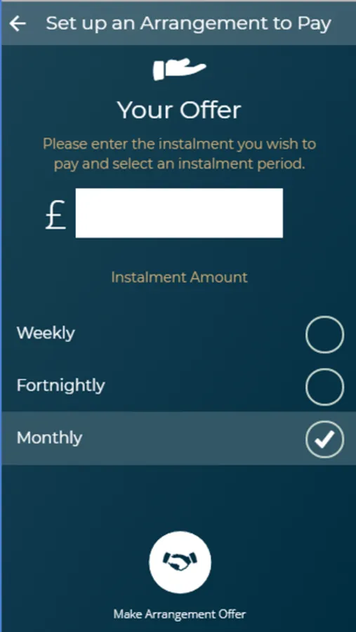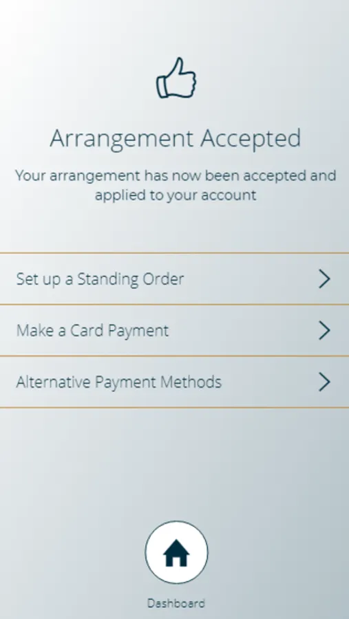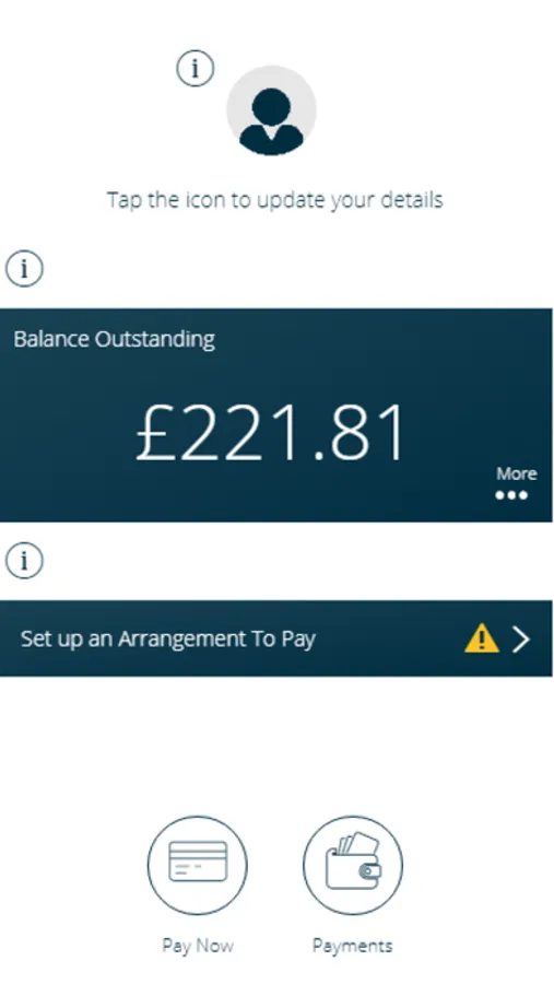 Gives easy and instant access to functionality, including; viewing case details, setting up arrangements, making payments and more.