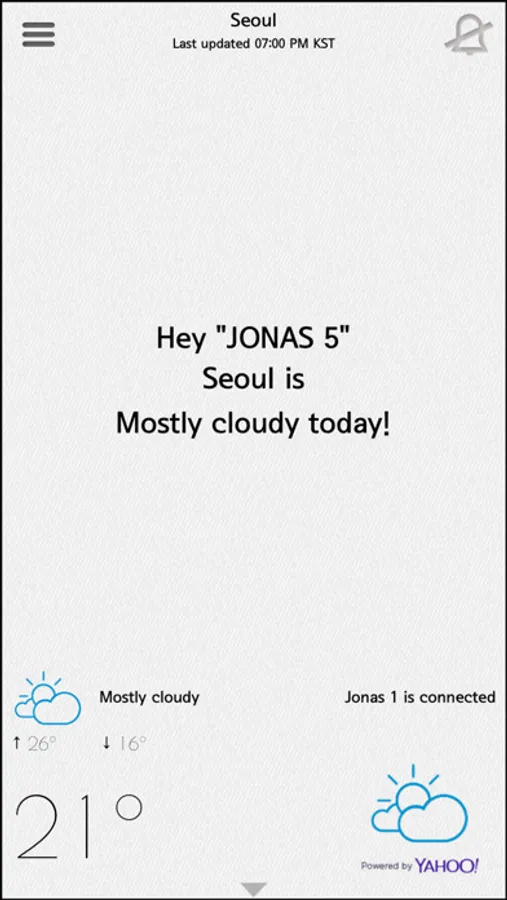 JONAS will send selected cities weather data to smart umbrella to notice the rainy date.