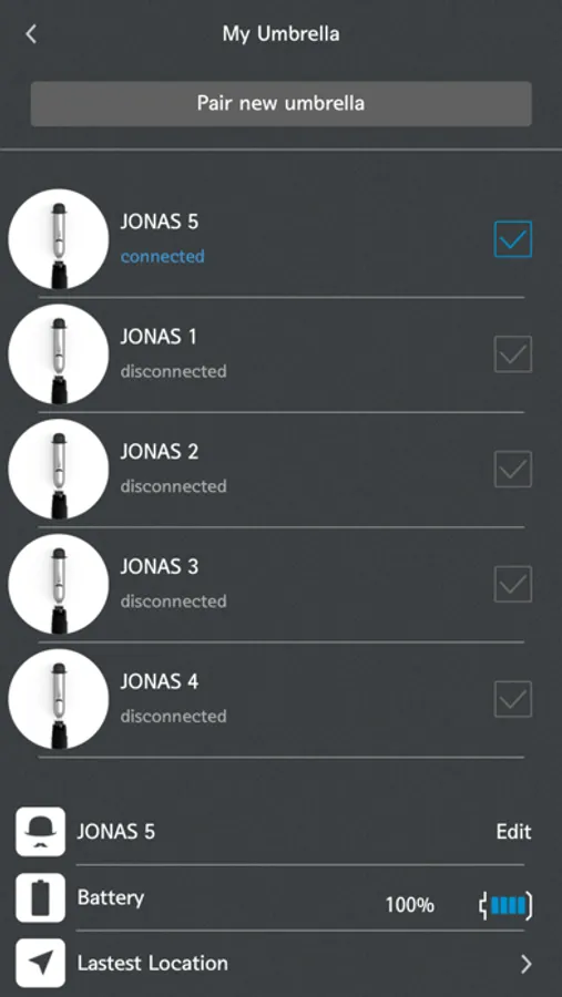 OPUS ONE JONAS is the companion app for OPUS ONE smart umbrella.