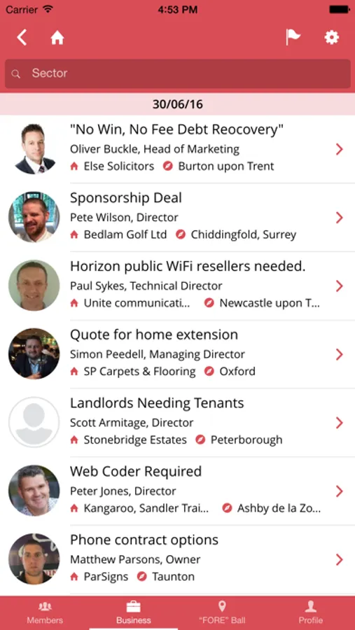 - Got a spare space in your four ball this week? Post it on the app and let other business owners join you on the course. Grow your network and develop powerful business relationships while perfecting your swing!