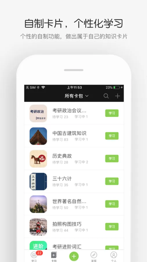 个性的自制功能,亲手做出属于自己的知识卡包。