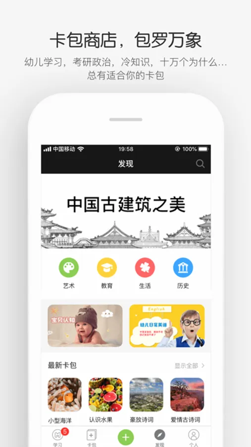 丰富的学习卡包, 为你对世界的探索铺好桥梁。