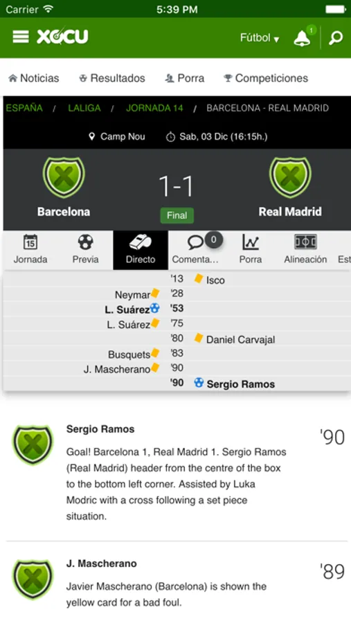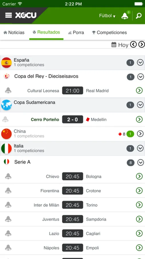 Disfruta en tu móvil de resultados de partidos de fútbol en directo de más de 400 competiciones de todo el mundo. Podrás visualizar los goles y resúmenes de cada partido y recibir notificaciones en tiempo real de tus equipos y partidos favoritos, además de estar informado de toda la actualidad deportiva. También podrás ganar premios compitiendo en la Liga de Porra y retar a tus amigos creando vuestra propia Liga de Porra.