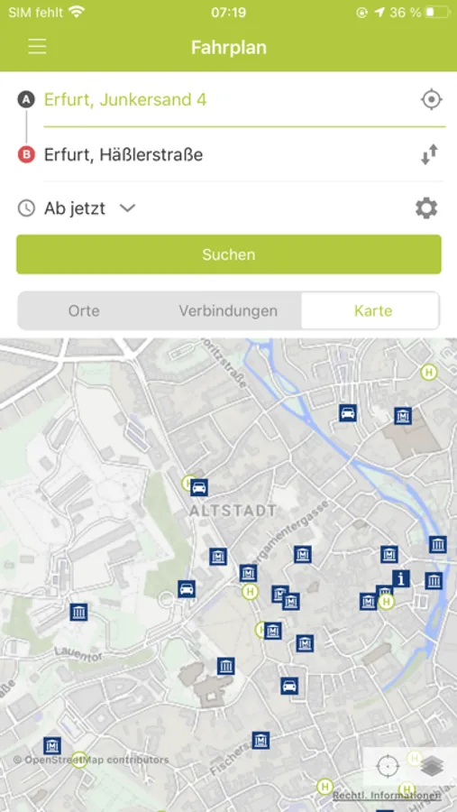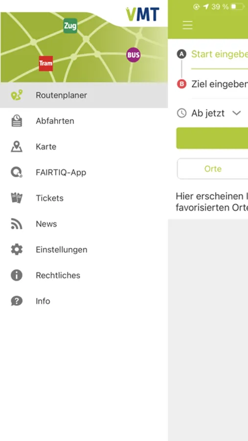 Ihr persönlicher Routenplaner mit integriertem Ticketkauf für Bus, Bahn und Straßenbahn im Verkehrsverbund Mittelthüringen (VMT)