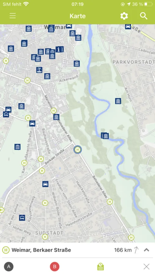 • kartenbasierte Abbildung von Carsharing Standorten und Auswahl als Start-/Zielort