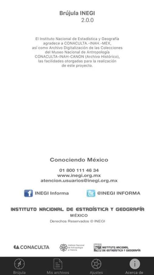 Antes de utilizar la Brújula INEGI en alguna actividad que dependa de la correcta ubicación del norte magnético (campismo, ecoturismo, etc.) verifique que en su dispositivo, ésta ubicación sea correcta tomando en cuenta alguna referencia conocida.