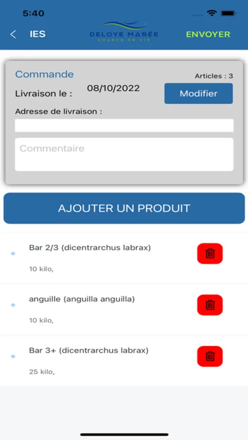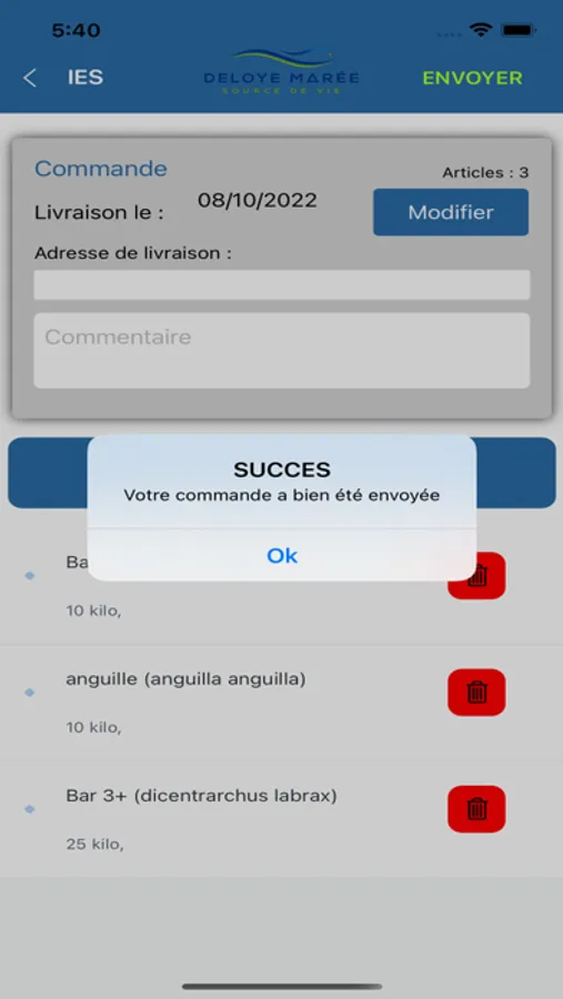 La poissonnerie Deloye Marée met à disposition de ses clients une application leur permettant passer leurs commandes et de consulter leur historique