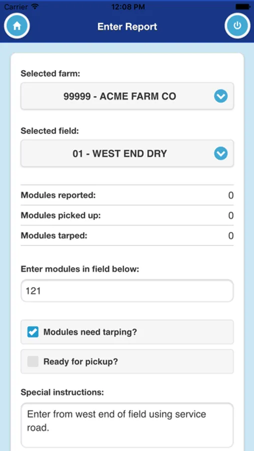 My Cotton allows existing Woolam Gin customers to easily request tarps for harvested cotton modules in the field, report modules for pickup, and receive a scale ticket number to mark on the modules.