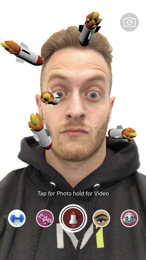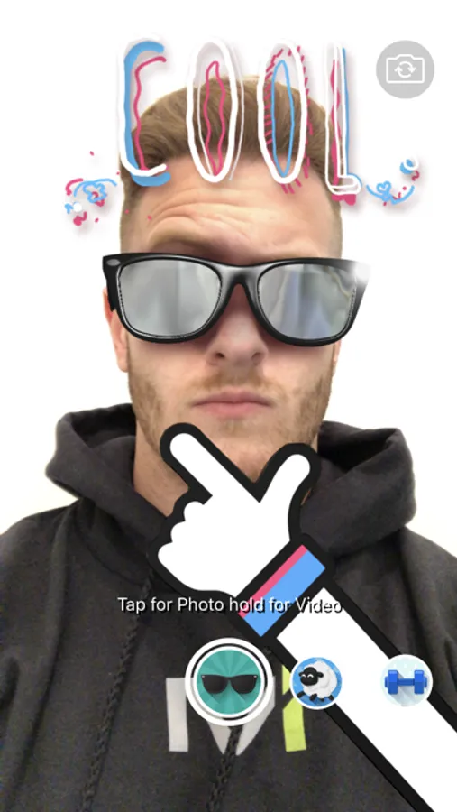 Hooya gives you live video selfie special effects that move with your facial features. Record and send videos to social media.