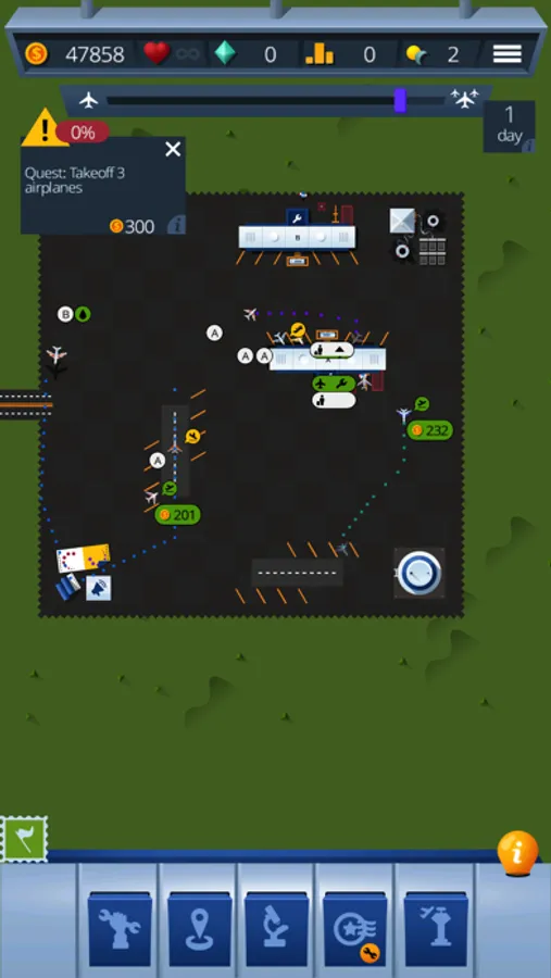 • Build: Add extra Air Traffic Control Towers to increase the airflow, unlock bigger airplanes to earn more money.