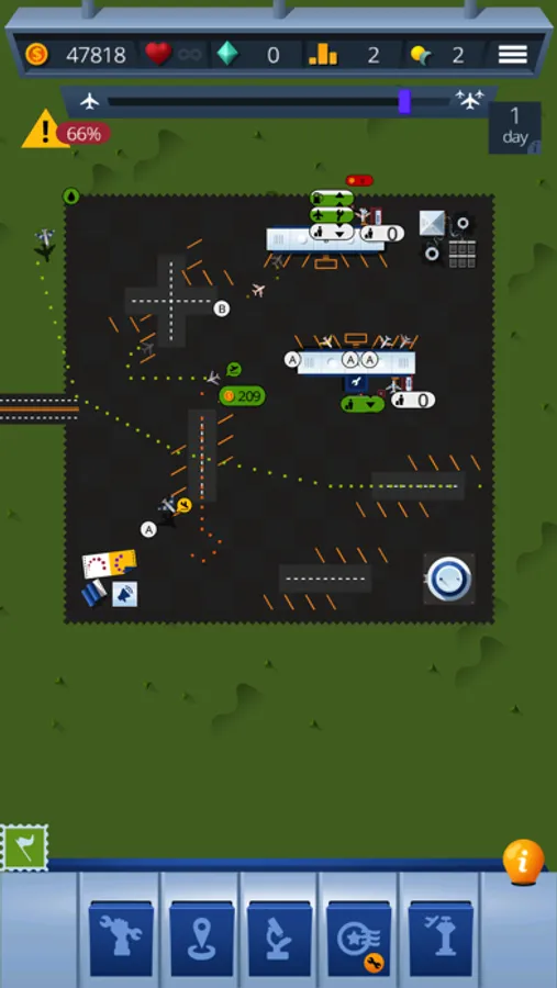 • Sandbox mode: you have unlimited lives, and you can grow your airport worrying only about turning a profit.