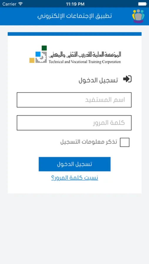 التطبيق الالكتروني الخاص بادارة الاجتماعات بالمؤسسة العامة للتدريب التقني والمهني