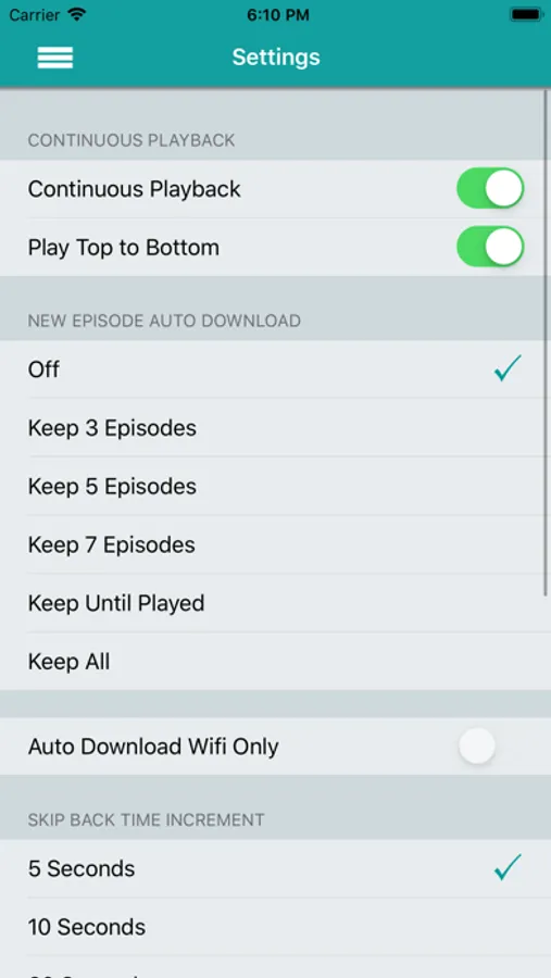 * Playback controls like continuous play, Speed 1x, Repeat Off, and Sleep Timer