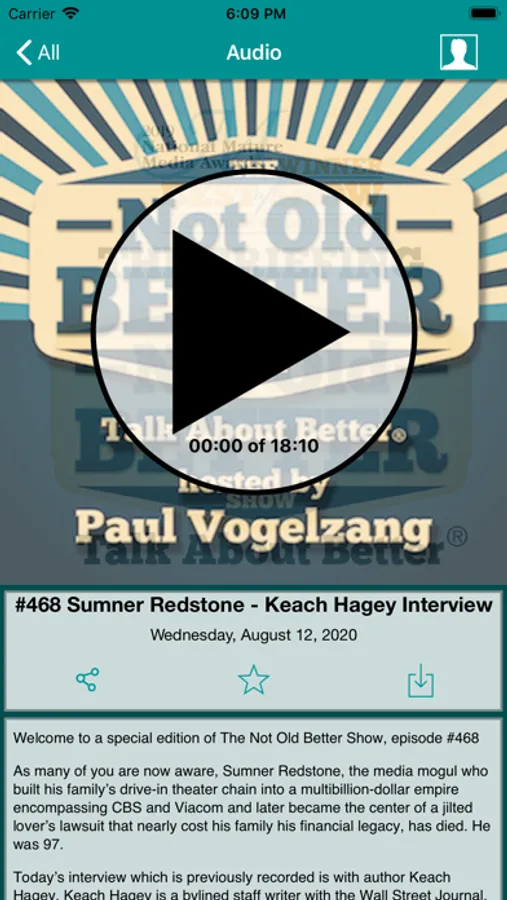 With this app you are always connected to the latest episodes and the show. Quickly star episodes and save them to a list so you can easily enjoy them over and over! This app has a Car mode too! Rotate your phone to display larger playback controls. It is the best and most convenient way to access The Not Old - Better Show.