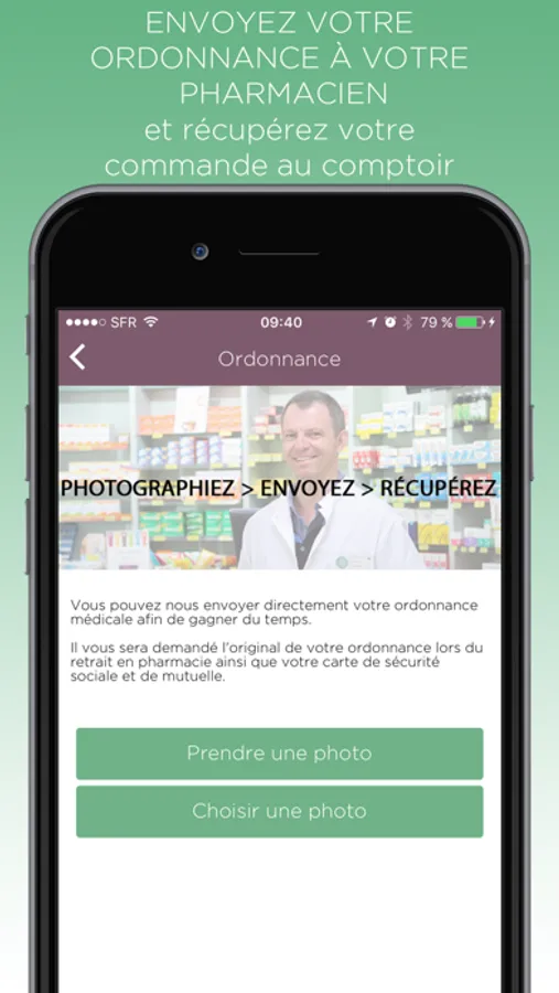 • de gagner du temps grâce à l'envoi de votre ordonnance (via l'appareil photo de votre smartphone) directement à votre Pharmacien