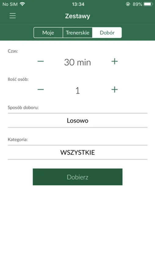 Możesz także samemu tworzyć lub automatycznie generować zestawy ćwiczeń, które wykorzystasz podczas swojego treningu.
