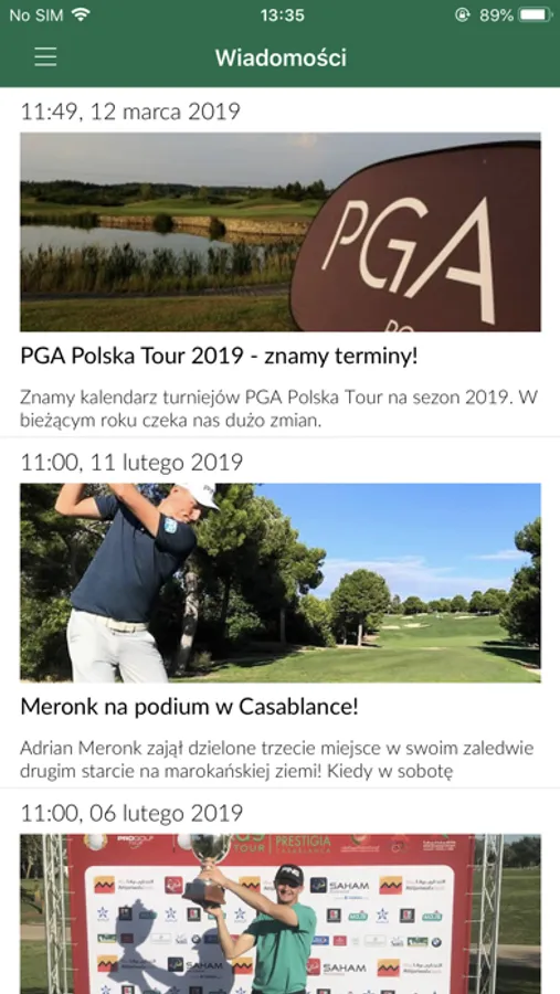 - wiadomości ze świata golfowego,