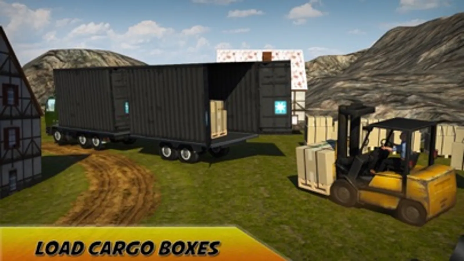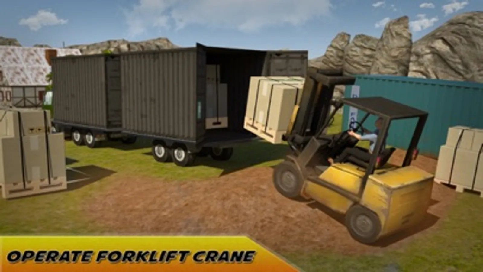 Work as a cargo truck driver and operate forklift crane to load cargo boxes on trailer. Then drive the truck in off-road environment for transporting goods to destination.