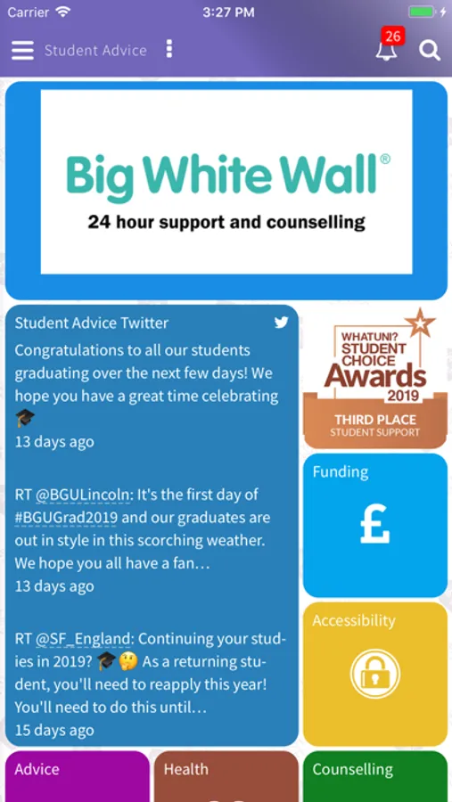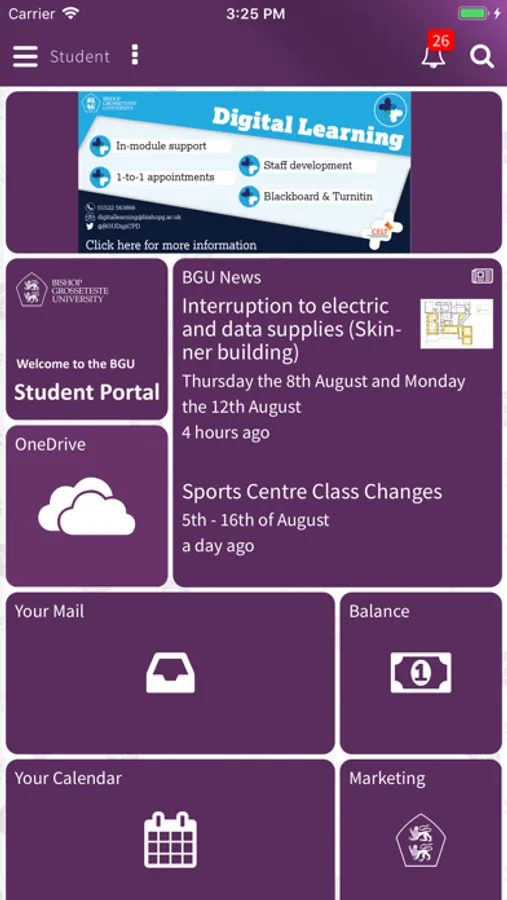 The myBGU app gives students and staff of Bishop Grosseteste University access to a mobile version of the myBGU/myday portal page.