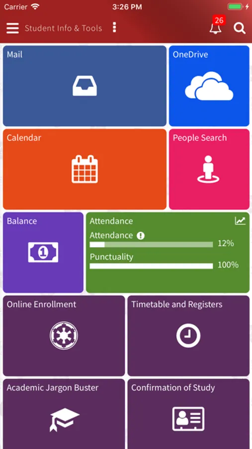 The myBGU app offers a mobile view of the desktop site, providing access to the same the tiles and data, for a consistent user experience. The mobile view can be customised to create a more personalised view.