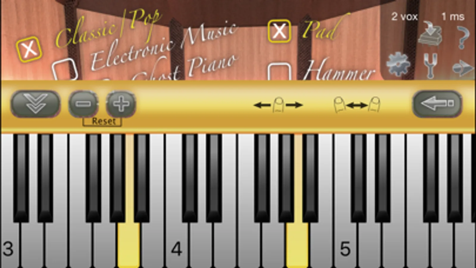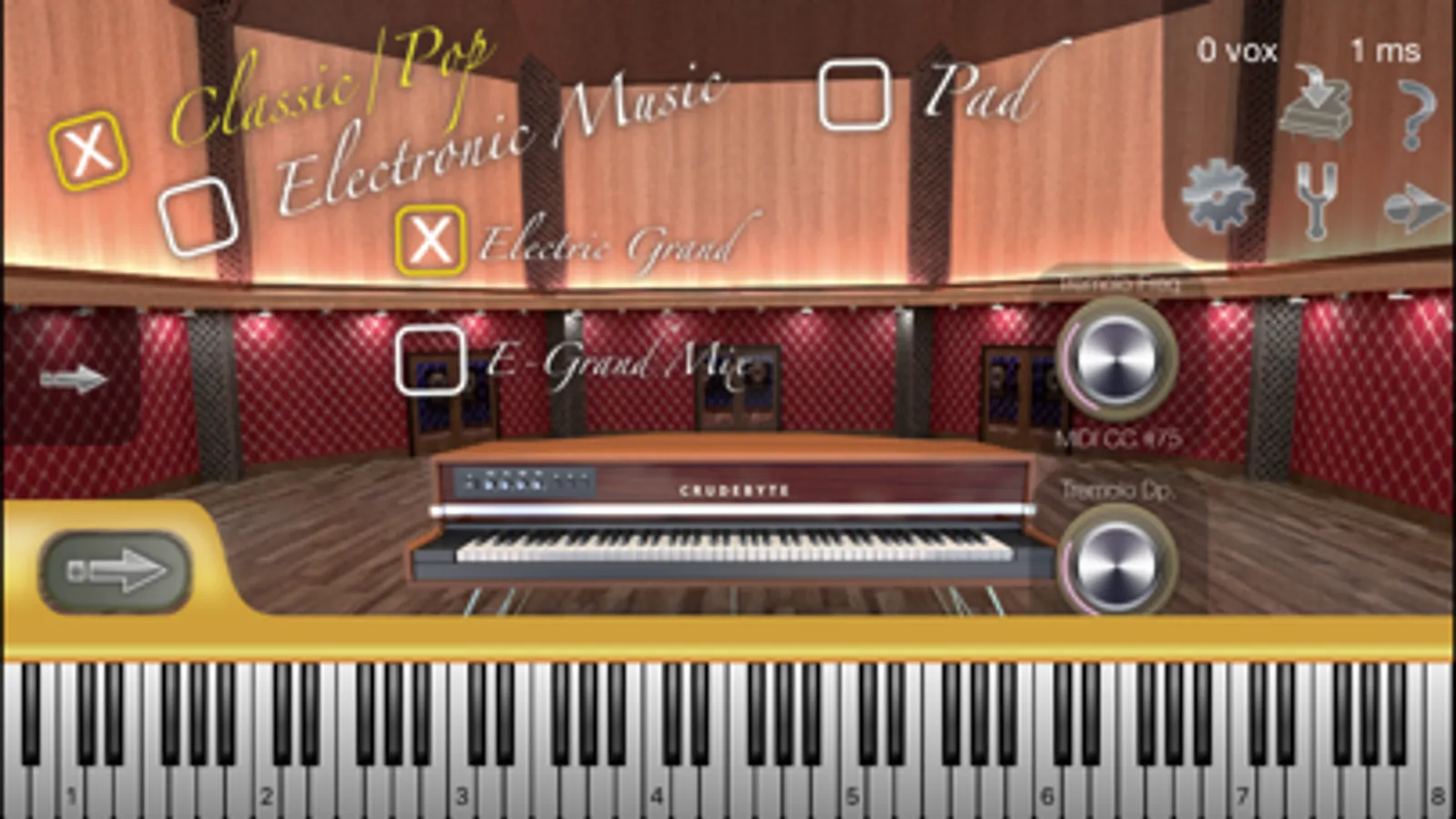 • Virtual on-screen piano keyboard with velocity support, scalable & scrollable.