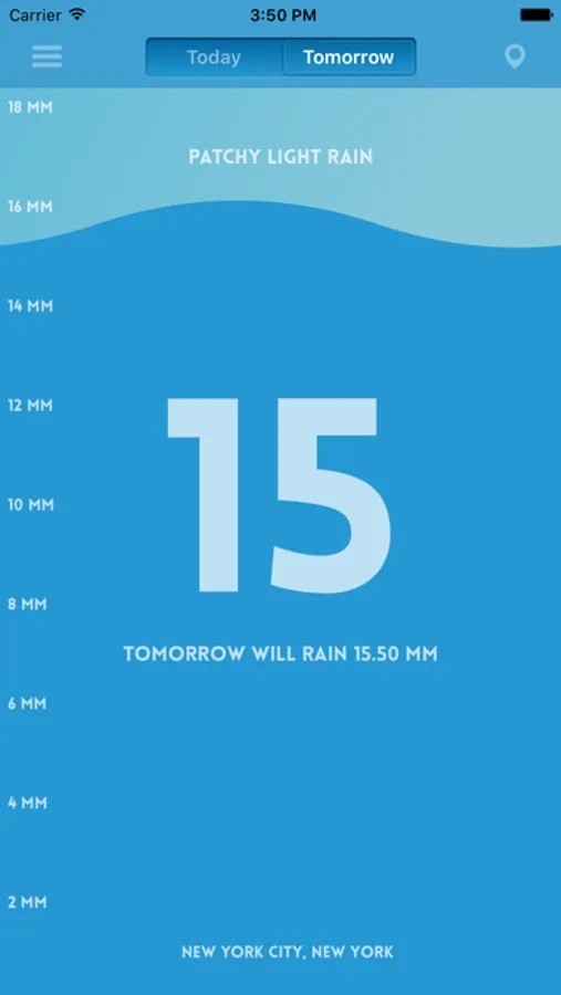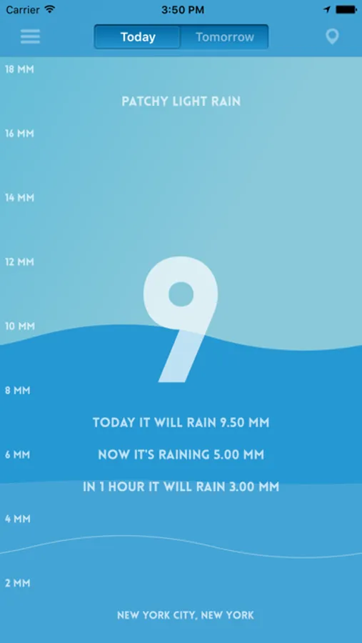 Pluviometer will give you the forecast of rain in one hour, the current level of precipitation, the total rainfall of today and tomorrow, in all places of the world.