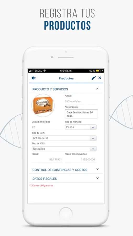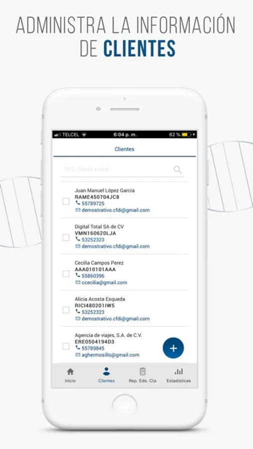 • Maneja eficientemente tu catálogo de clientes, productos y servicios.