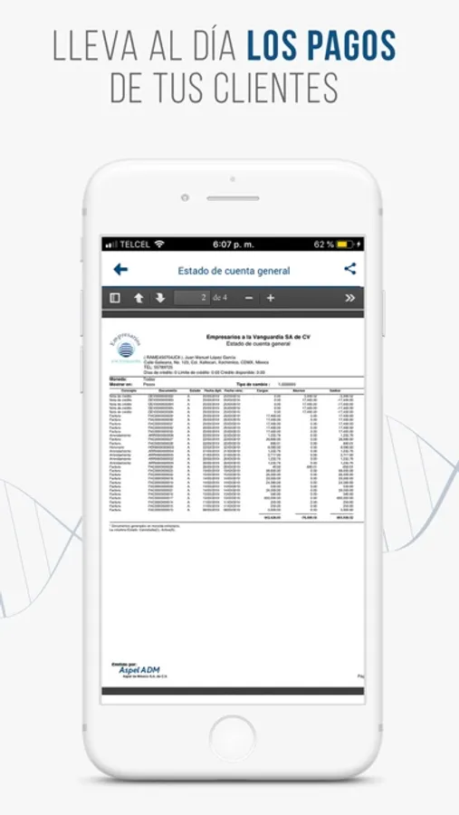 • Ten disponible en todo momento el estado de tus cuentas por cobrar.
